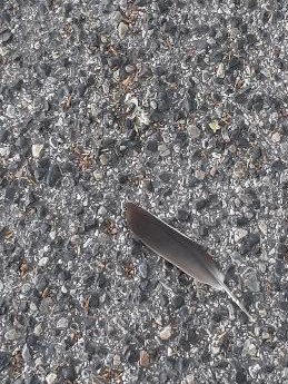 I've been trying to get some exercise in the mornings. I stay close to home and on a recent morning walk I once more noticed a grey and white feather in my path. Huh . . .